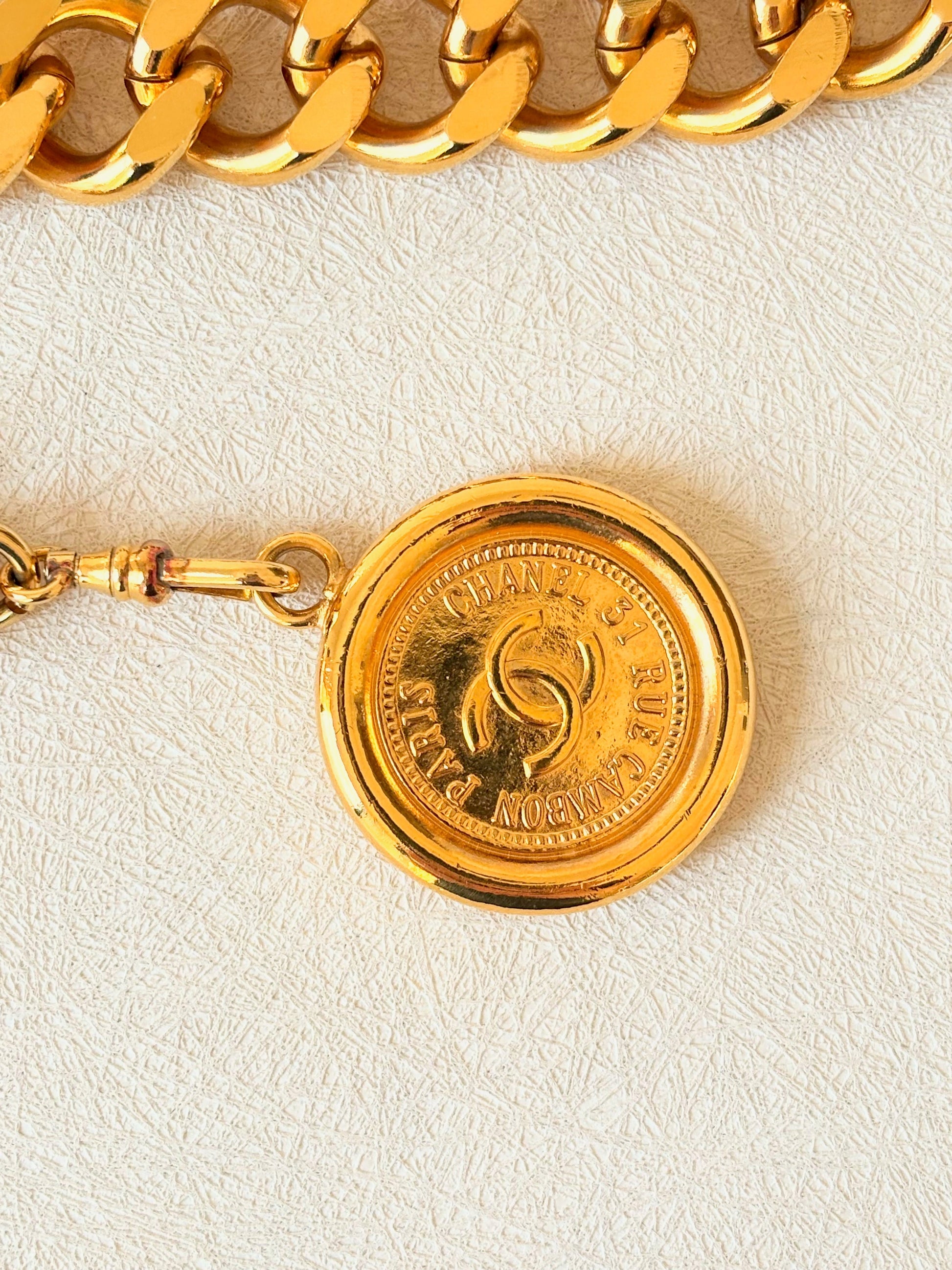 * Ceinture CHANEL vintage à gros maillons en métal doré