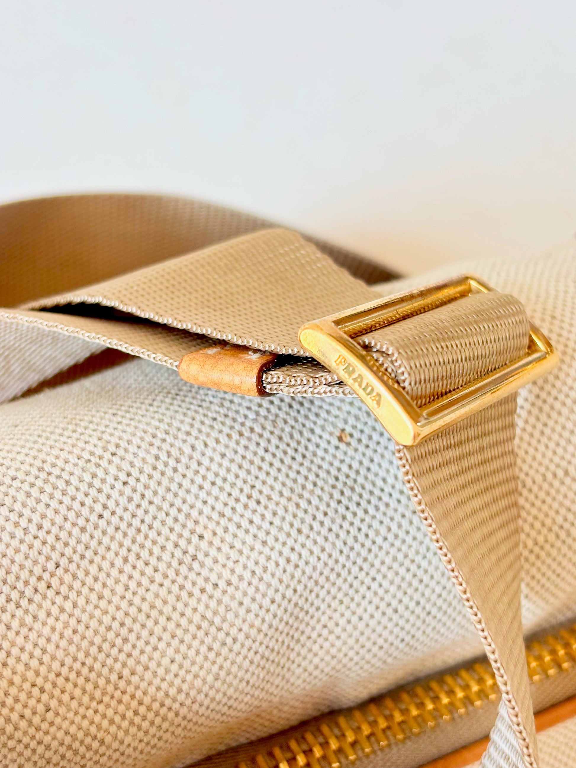* Bandoulière en toile beige, amovible et ajustable